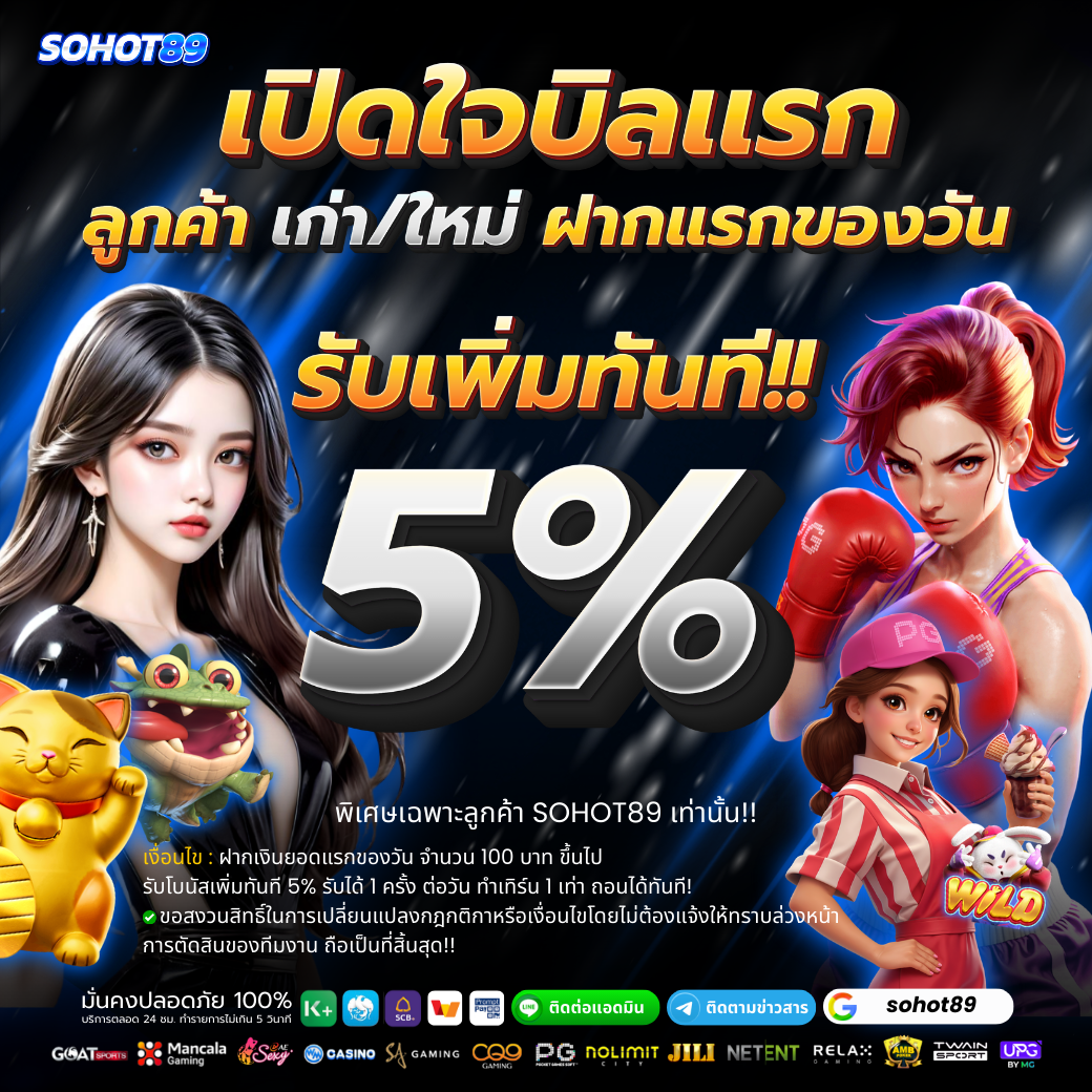 รับโบนัสเพิ่มทันที 5% รับได้ 1 ครั้ง ต่อวัน ทำเทิร์น 1 เท่า ถอนได้ทันที! 🎉